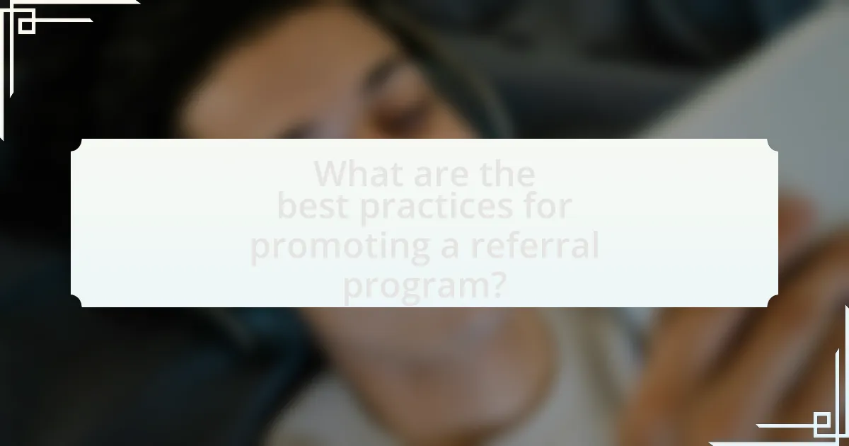The best practices for promoting a referral program include leveraging multiple marketing channels, offering attractive incentives, and simplifying the referral process. Utilizing social media, email marketing, and in-app notifications can effectively reach a broader audience. Research indicates that referral programs with clear and compelling rewards can increase participation rates significantly; for instance, a study by the Wharton School found that referral programs can lead to a 20-50% increase in customer acquisition. Additionally, ensuring that the referral process is user-friendly encourages more users to participate, as complex systems can deter engagement.